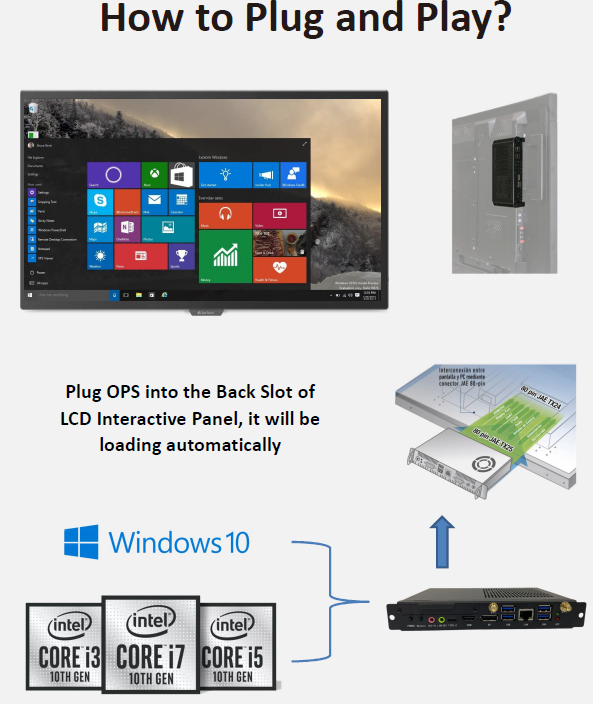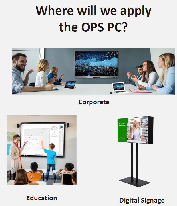 非常适合应用于教育、企业会议、数字标牌及培训环境,OPS PC 桌面处理器为各类智能显示系统提供核心计算支持,实现更强的性能、更高的互动性与更高的生产效率。