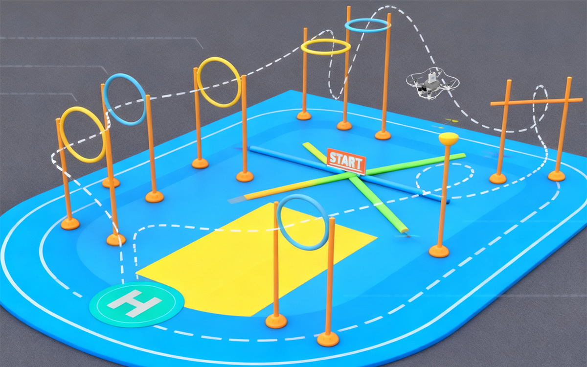 参赛选手在指定区域内控制无人机起飞、完成个人飞行赛道任务并降落至起降区。比赛过程中根据飞行表现进行加分或扣分,最终以总得分高者名次靠前;若得分相同,则以用时较短者为优胜。每位选手飞行两次,取最好成绩计入排名。