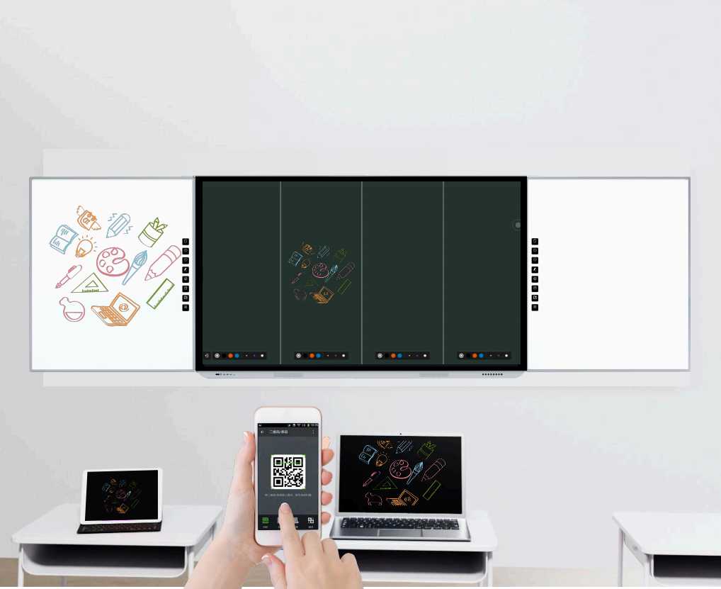 配备完善的黑板书写工具,红外记忆功能可将手写内容转化为数字笔记,